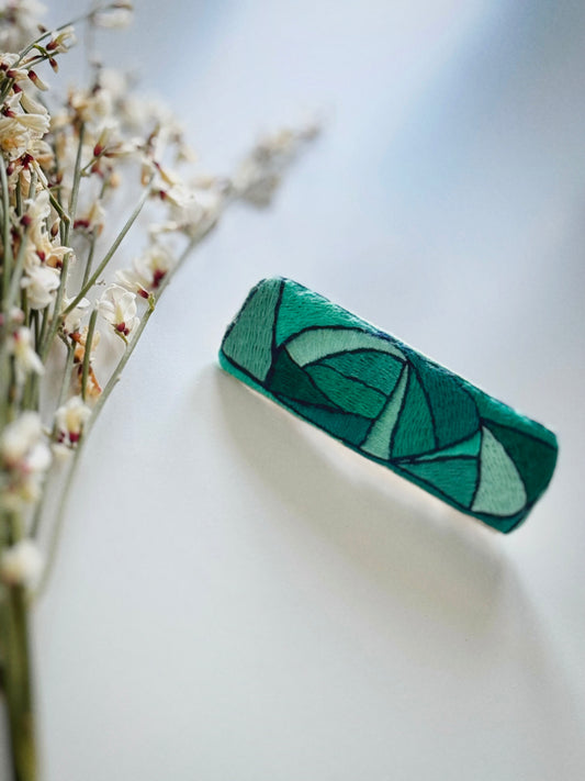 Hand-Embroidered Hair Clip - “Evergreen” / On-of-a-kind piece / Abstract